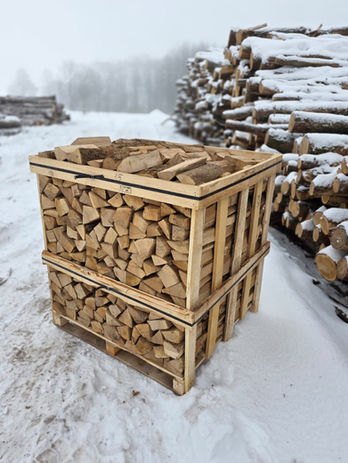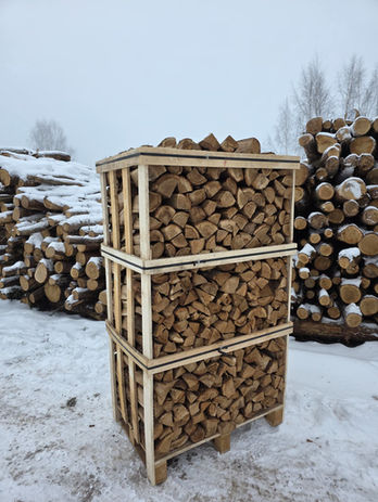 Package sizes: 1–2 m³ (bulk or stacked firewood)